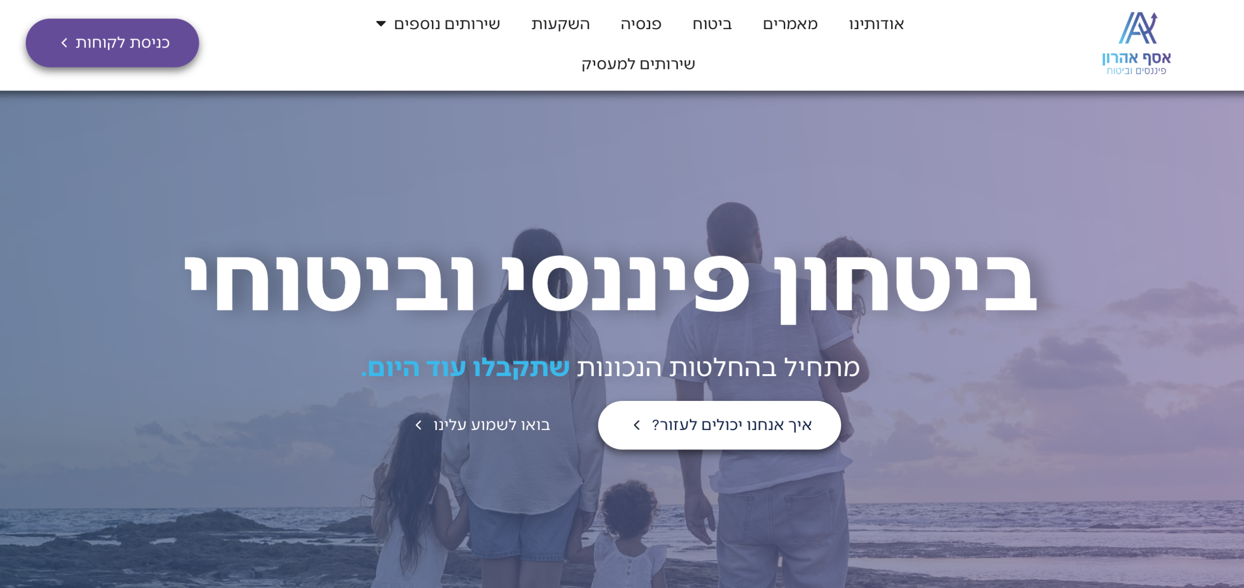 אסף אהרון, בעל סוכנות חזקה, מלאת פתרונות מתקדמים ללקוחות, תפס את תשומת ליבי מהרגע הראשון. מה שהוביל אותי בעבודה איתו, היא לייצר, יחד עם יובל מגן, בונה האתרים המוכשר, אתר חדשני, שנותן ביטחון ויוצר עניין מלא צבע, מתחום שרבים הציגו כאפור.